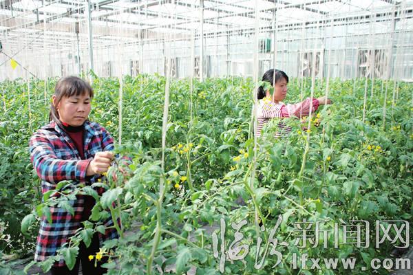 临汾新闻网讯 尧都生态产业园项目是尧都区按照“政府引导、企业主体、市场运作、节约经营”模式发展的观光农业重点示范园区。园区内不仅种植了大量的名贵花卉,而且还发展了精品蔬菜大棚。图为蔬菜大棚园区的工作人员正在给西红柿剪枝。 (刘凯杰)