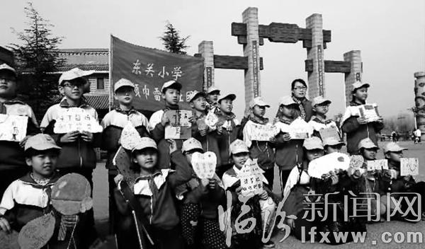 临汾新闻网讯 3月5日,尧都区东关小学开展了“相约春天、小雷锋微行动”系列活动。活动中,孩子们清理了公园垃圾,向市民宣传了低碳环保生活理念。图为活动结束时,孩子们手捧自制的环保标语牌开心的合影留念。(黄翠鹂)
