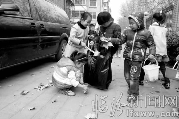 临汾新闻网讯 日前,尧都区实验幼儿园小朋友深入临汾三中小区,为小区居民打扫环境卫生,积极参与“关爱他人、关爱社会、关爱自然”志愿服务活动中,争做文明爱心志愿者。图为孩子们在捡拾路上的落叶。