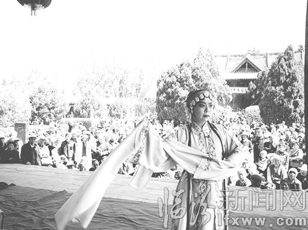 当天在元代古戏台登场的有我市青年眉户剧团和尧都区蒲剧团。首先登台的是青年眉户剧团,该团演出的是《乞丐与状元》的片断《教子》。尧都区蒲剧团演出的节目是传统折子戏《徐策跑城》。