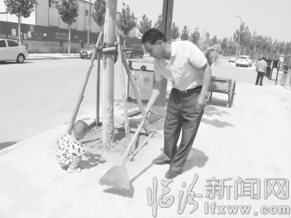 临汾新闻网讯 5月21日,记者在尧都区涝洰河公园门口看到,一位陪孙子玩耍的刘师傅随手拿着一把笤帚,跟在孙子旁边打扫孩子用小铲子铲出的土块土渣。