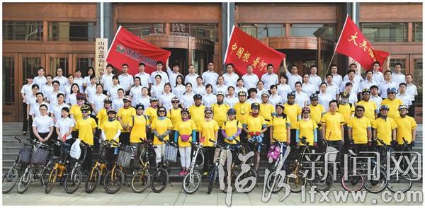 临汾新闻网讯 为积极响应市委、市政府的号召,激发全市人民助力申办2016年山西旅游发展大会主办权的热情,全力支持鼓楼南北街改造“绿色出行,低碳出行”的新要求与新倡议,进一步提升临汾市的整体形象与社会知名度,6月12日,由尧都农商银行主办的“发现城市之美”骑行活动成功举行。