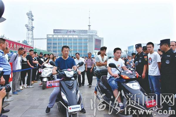7月18日上午,尧都区公安局在市区平阳广场举行打击“盗、抢、骗”涉案赃物认领返还大会,百余辆追缴回来的电动车、摩托车等待失主前去认领。认领现场,市民李女士激动地说:真是没想到,丢了3年的摩托车居然还能找回来,太感谢民警了。”