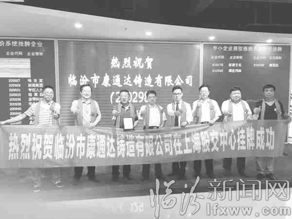 临汾新闻网讯 (记者 卢凯)7月22日下午,伴随着挂牌锣声的响起,临汾市康通达铸造有限公司(股权代码:210298)在上海股权托管交易中心中小企业股权报价系统(Q板)成功挂牌,成为尧都区首家上市的铸造企业。这标志着该企业正式进入发展的另一个新台阶,可借助资本市场的力量,更好地打造“临汾铸造”这张靓丽名片。