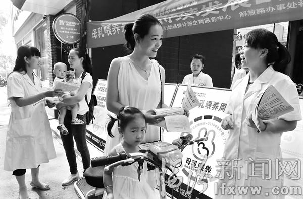 临汾新闻网讯 8月3日,医护人员在向市民讲解母乳喂养知识。