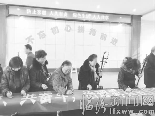 临汾新闻网讯 针对近期雾霾天气频发,为了坚决打好生态环境整治攻坚战,近日,尧都区老干部局、老年大学组织工作人员深入各相关单位、老干部活动中心和老年大学宣传雾霾的危害及怎样防治等知识,并在老干部活动中心、老年大学、金阳宾馆悬挂了宣传标语,同时开展了“同呼吸、共奋斗,治污减霾我们在行动”百人签名活动。旨在倡导老年朋友们的责任意识,从我做起,从小事做起、从点滴做起,少开一天车,少放一点烟花爆竹,少抽一支烟等,力争为减少雾霾、治理雾霾作贡献。 记者 苏亚兵 摄