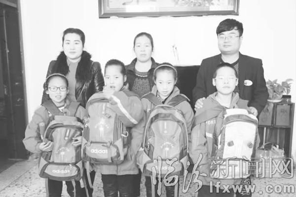 “快点站好,给叔叔阿姨们问好!赶紧给一直关心咱们全家的好心人深深鞠一躬。”刚一进门,在母亲郭海霞的组织下,只见四个身穿校服、活蹦乱跳的孩子齐刷刷地站成一排,伴随着一声响亮、清脆的问候,向9年来一直关爱自己的爱心人士送上了发自内心的感谢。
