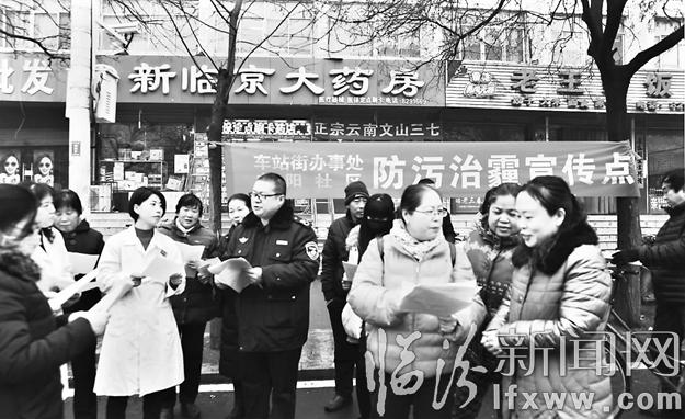 临汾新闻网讯 近日,尧都区环保局车站街中队和车站街办事处向阳社区共同设立防治雾霾宣传点,向辖区的居民和商户宣传环保知识。