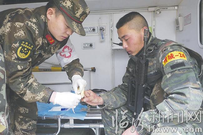 “你明天不能再参加比赛,更不允许攀爬大绳。”医疗组石佳这样嘱咐晋城战队特战队员柴震。原来,柴震在训练中,右手无名指被挤压,导致指甲位置红肿化脓。