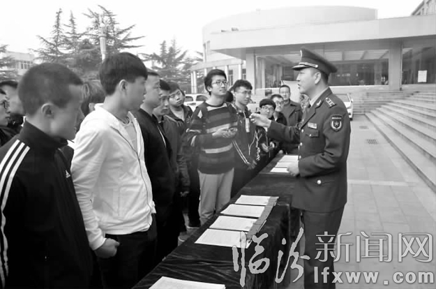 临汾新闻网讯 4月12日,尧都区人武部在山西师范大学进行了兵役登记宣传,他们对大学生关心的报名应征、优抚安置等方面的问题进行了详细讲解,有力地营造了兵役登记的浓厚氛围。