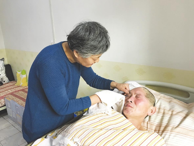 由于脑部出血量过大,丈夫成了睡不醒的植物人。王雪风没有畏惧,用爱呵护着丈夫微弱的生命之光。