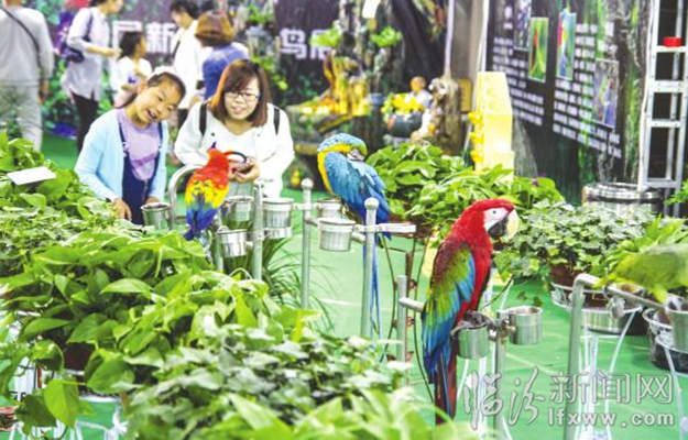 临汾新闻网讯 机灵的蜡嘴鸟,色彩鲜艳的鹦鹉,高傲的孔雀……5月1日,新百汇中心广场上百鸟争鸣,热闹非凡,市民们纷至沓来,与鸟儿“亲密接触”,感受大自然带来的快乐。