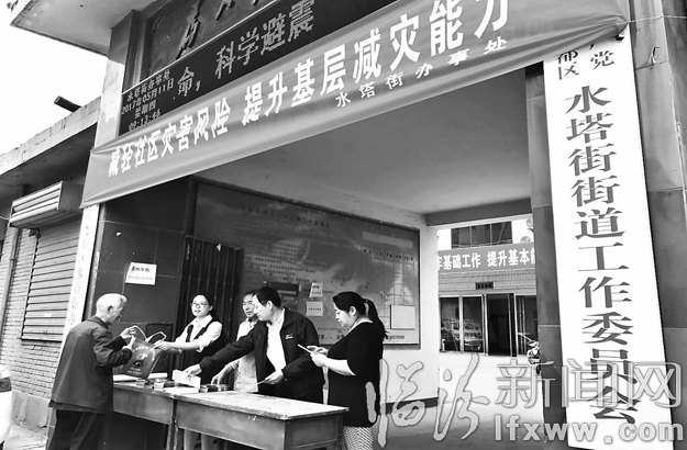 临汾新闻网讯 今年5月12日是我国第九个防灾减灾日。为了让群众更好更多地了解地震知识,5月11日上午,尧都区水塔街办事处开展了“减轻社区灾害风险,提升基层减灾能力”活动。活动中,办事处向辖区居民免费发放《地震来了怎么办!》《关注地震安全建设美好尧都》等小册子100余份。