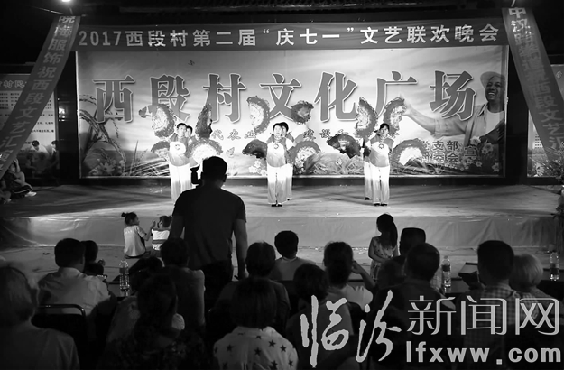 临汾新闻网讯 7月1日,尧都区段店乡西段村举办了第二届“庆七一”文艺联欢会。村民们自编自演,表演了舞蹈“映山红”琵琶语”、歌曲大合唱“红歌联唱”、武术操“千字文”等,活动形式多样,丰富了当地村民们的精神文化生活。图为在西段村,村民们载歌载舞欢度“七一”。