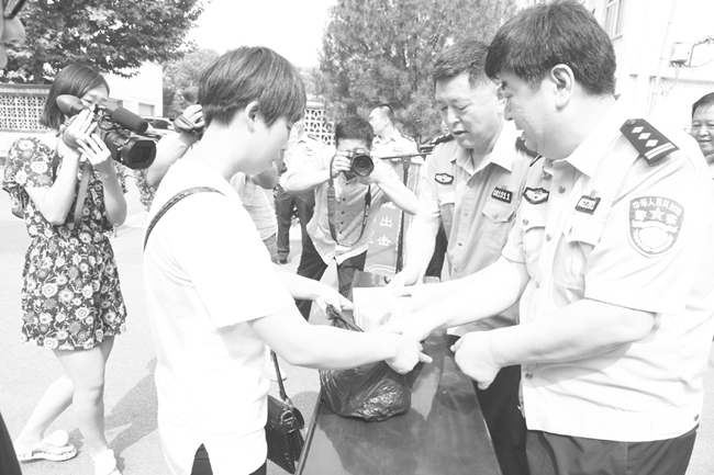 8月16日10时,尧都区公安局在机关院内举行“迎接十九大、全警保平安”严打整治行动涉案财物返还大会。当民警将追缴的宝马、奥迪、丰田等品牌13辆轿车和现金15万元分别返还给失主时,他们将一面面锦旗交到民警手中,对尧都公安“严打犯罪、一心为民”的工作精神表示诚挚谢意。