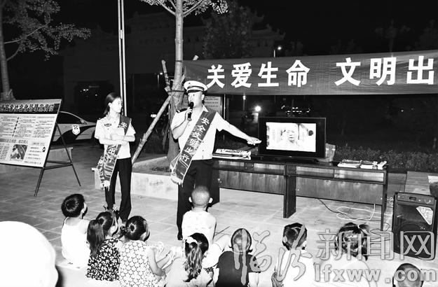 临汾新闻网讯 为进一步做好夏季农村地区道路交通安全宣传工作,提升广大农村群众的交通安全意识。日前,尧都区公安局交警大队法制(宣传)室和空港中队民警走进屯里镇韩村,利用农民晚饭后在村广场消夏的有利时机开展交通安全宣传活动。
