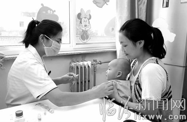 临汾新闻网讯 9月24日,在尧都区南街社区卫生服务中心,工作人员在为辖区的儿童接种疫苗。尧都区南街社区卫生服务中心在做好“规范接种疫苗,共建健康平阳”活动中,通过对辖区适龄儿童和流动人口家庭儿童建立健康档案等措施,普及疫苗接种的相关知识,指导年轻父母了解预防接种的重要性,及时给孩子接种疫苗。