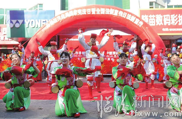 临汾新闻网讯 12月4日是全国法制宣传日。当天,尧都区文化局结合新颁布的《临汾市非物质文化遗产保护管理办法》,开展现场咨询、非遗展演等形式多样的宣传活动,使广大群众对《办法》有了更加深刻的认识。图为尧都区群众艺术馆舞蹈队在表演《翼城花鼓》。