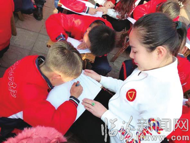 临汾新闻网讯 12月18日,由大爱临汾公益联盟组织的暖冬公益行动走进尧都区刘村镇北刘学校,捐助了20名孤儿、事实孤儿及家庭困难儿童。爱心团队不仅给孩子们带来了羽绒服、鞋子、水杯、书包等学习用品,还同孩子们进行了一系列团体活动和心理游戏。图为志愿者启发孩子们写出自己的新年愿望。