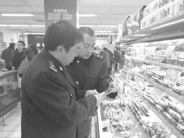 临汾新闻网讯 元旦前夕,市工商局尧都分局的执法人员深入市区各大商场、超市,对熟肉、奶制品、酒品等进行集中检查,为广大群众节日期间的“餐桌安全”保驾护航。