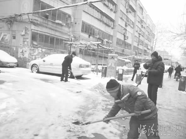 临汾新闻网讯 1月4日,尧都区车站街办事处铁路社区发动辖区义工志愿者在北门外铁路小区铲除积雪。尽管天气寒冷,但志愿者们依旧热情十足,用实际行动为广大居民扫出一条方便之路。