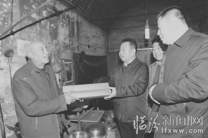 2月5日,市工商局尧都分局精准帮扶工作队队员深入尧都区河底乡交口村、西凹村开展“迎新春·献爱心”活动,向贫困户发放了面粉、食用油、大米、春联等物资,为贫困村民送去新春的祝福。 记者成华摄