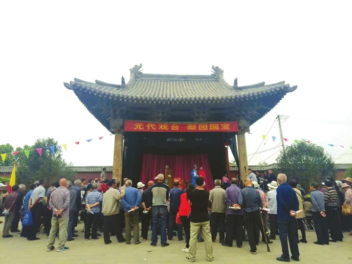 魏村牛王庙戏台建于元至元二十年(1283年),戏台呈平面正方形,为典型的单檐歇山顶建筑。四角立柱,前两根为抹角石雕,台周三面敞朗,台上无前后之分,顶部为精构巧架的藻井,整个建筑精巧别致,古朴典雅,是我国现存最久远的元代戏台。如今,古戏台受到文物部门的重点保护,庙会期间的戏曲表演大多在现代舞台进行,只有农历四月初十这天,在魏村文物管理所及当地村民的联合保护下,才会在古老的戏台上唱一段传统戏曲,让群众感受古老戏台和传统戏曲的魅力。