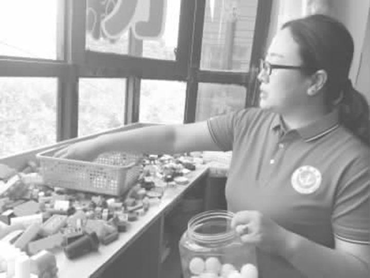 朱海娟是2014年从一所幼教机构应聘到这里的,这几年里,她经常出去参加一些专业培训。4年来,从刚开始心里的那种担心逐渐被孩子们一点点的进步所代替。她说:刚从幼教来到这里时,一段时间内我一直在纠结自己的教学方法,但是我始终认为,你越把他特殊化,他们越会有压力,我知道他们不是不会、不是不懂,只是比别人慢一些。”“相对大班的孩子们来说,我们在这个阶段更注重孩子的动手能力、和小伙伴们的配合能力,让孩子们通过一些玩具和感统训练,达到肢体协调和学会与小朋友们一同玩耍。”说着,记者跟随朱海娟来到了他们的教室,只见各种玩具整齐地摆放在教室周围,这个是训练平衡能力的;穿珠子游戏是培养孩子们动手能力的……”尽管朱海娟一遍又一遍地纠正孩子们的动作,但眼睛里看不到一丝不耐烦。