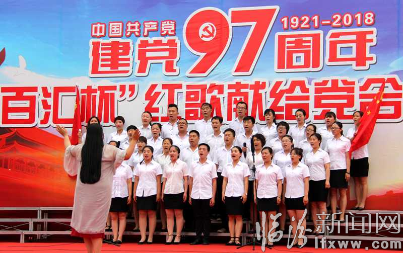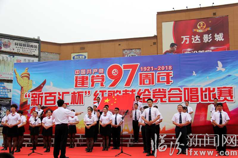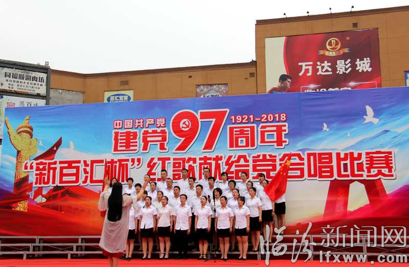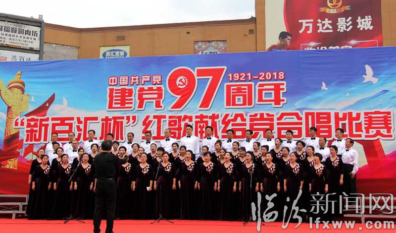临汾新闻网讯 7月1日下午,中国共产党建党97周年“新百汇杯”红歌献给党合唱比赛在新百汇商贸公司中心广场举行。由尧都区19支非公经济和社会组织单位组成的合唱队伍献出36首内涵深刻、旋律优美、传唱经久的红歌,表达出了对党的无限热爱之情。