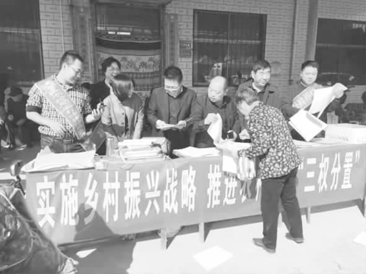 临汾新闻网讯 10月30日上午,尧都区农经局工作人员走进县底镇县底村开展“实施乡村振兴战略推进农村土地‘三权分置’”宣传活动。