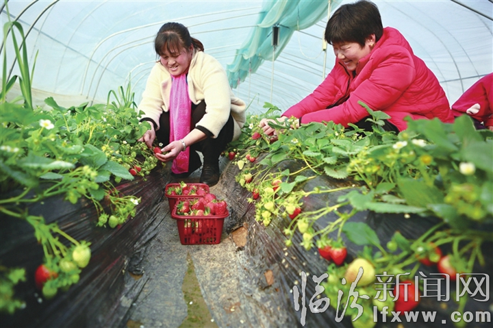 临汾新闻网讯 2月19日,尧都区段店乡和顺达音乐草莓基地一派繁忙景象。众多市民来到草莓基地,边旅游边采摘,乐享初春的美好生活。