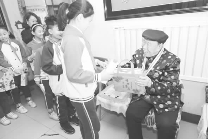 活动结束后,志愿者们和一些小学生一起来到今年101岁的沈永亮老人家里,为老人进行了义诊。老人讲述了当年打“鬼子”的革命故事,鼓励孩子们要好好学习,将来为国家作贡献;孩子们给老人跳了欢快的舞蹈,赠送了自己亲手制作的小礼物,祝老人身体安康。