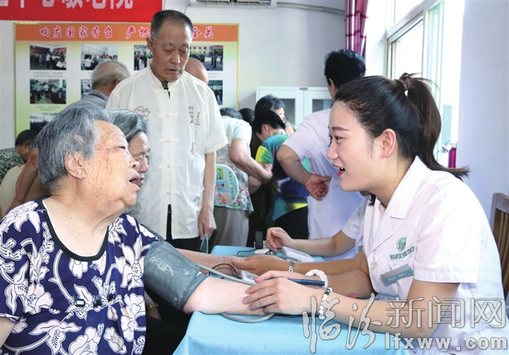 临汾新闻网讯 7月13日,医务人员在尧都区中心敬老院为老人检查身体。