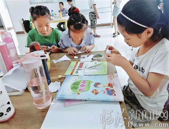 孩子们在托管班里做手工