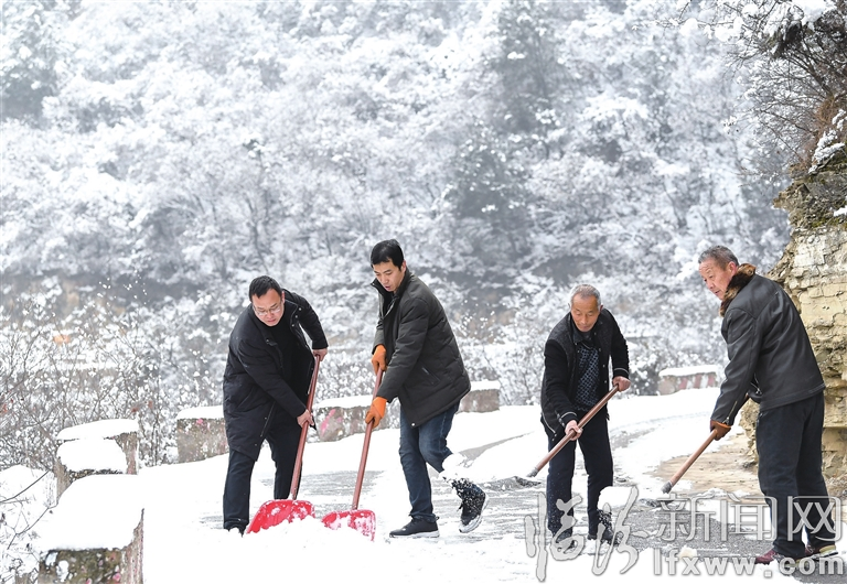 临汾新闻网讯 1月8日,尧都区姑射山仙洞沟景区的工作人员在清理积雪。该景区以上山通道无积雪、道路不结冰为标准,组织工作人员及时投入到积雪清理工作中,确保游客出行安全。