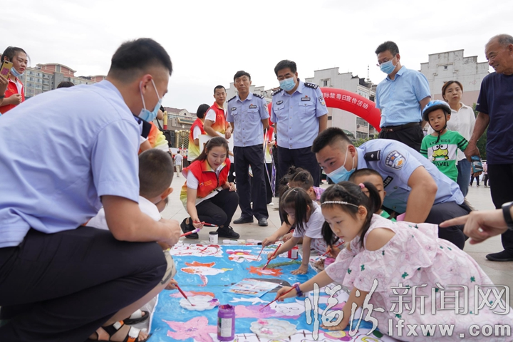 在游戏互动环节,民警将禁毒宣传和趣味游戏相结合,把毒品知识、辨毒技巧等融入游戏中,以禁毒知识有奖竞答、现场涂鸦、拍照打卡等方式进行,现场的市民群众和小朋友们积极参与,在寓教于乐的氛围中学到了禁毒防毒知识。