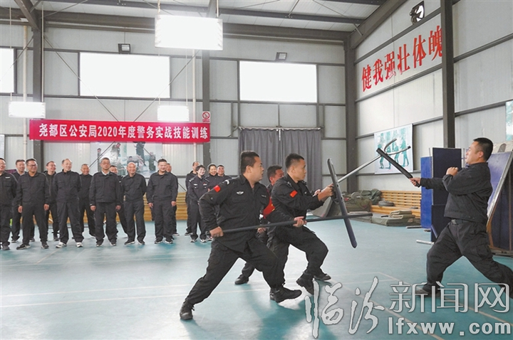 临汾新闻网讯 为落实2020年度大培训、大练兵工作方案,提升公安民警警务实战能力和警械使用水平,10月26日至28日,尧都区公安局组织全局100余名民警分三批进行警务实战技能专项训练。训练中,参训民警坚持以练促战、以战带训,规范操作,相互沟通探讨,着力练好“内功”,进一步提升了警务实战技能、警情处置和应对突发状况的综合能力,取得了良好的训练效果,为维护辖区政治社会稳定打下了坚实的人才基础。图为训练现场。