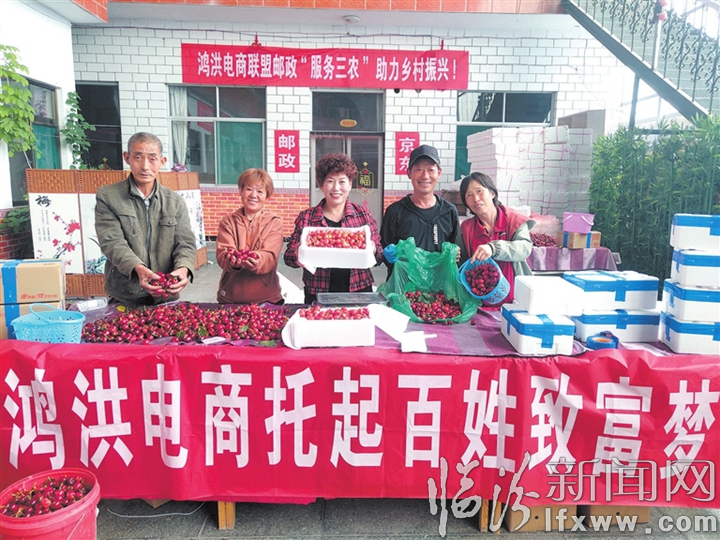 临汾新闻网讯 5月30日,在尧都区县底镇贺家庄村鸿洪电商院内,裴双全夫妇与贺红顺夫妇正在通过电商平台销售樱桃。贺家庄村一带是有名的优质樱桃产源地,鸿洪电商在田间地头手把手教会果农通过微信、小视频、抖音等销售樱桃,并联盟邮政、京东两大物流公司开展下乡服务,及时帮果农把樱桃销售到全国各地。