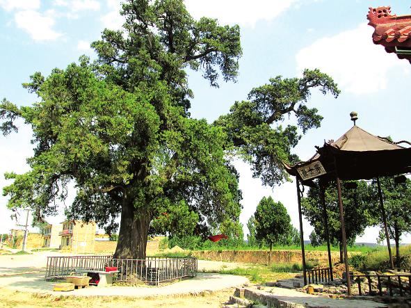 据杨家掌村村委会主任薛建强介绍,这棵千年古柏与伏羲画卦有关。相传,人们如果砍伐这棵古柏,周边村子的牲口必然会大批死亡,或许,正是这个神奇的传说,才使这棵千年古柏至今保存完好。