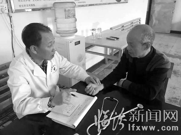 临汾新闻网讯 石明海,翼城县中医院名医堂专家。二十年来,他把心思都放在患者身上,对每一位来就诊的病人都会细心了解病情,对症下药,从不让病人花过多的钱,并利用周末时间免费下乡义诊,受到群众的欢迎和赞扬。图为石明海为村民诊治。记者 李娇 摄