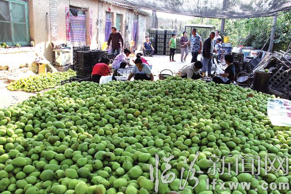 临汾新闻网讯 近日,翼城县北关村村民谷家祥家种的25亩红香酥梨已成熟,来自绛县的客商正在挑选装箱,准备销往南京、南昌等地。今年,北关村许多村民种植的梨树喜获丰收,前来收购的客商络绎不绝。 程韵龙 姚冬娟 摄
