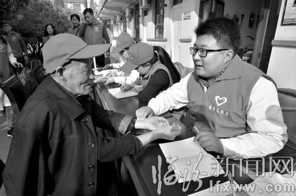 临汾新闻网讯 10月20日,翼城县中医院通过为光荣院的老人进行免费体检,为老人们送上了一份有意义的“重阳”健康礼物,医护人员认真仔细地为每一位老人作血压、心肺等常规检查,对每位老人的健康情况都做了详细的记载,通过此次活动旨在弘扬中华民族尊老敬老的传统美德,更好地树立尊老敬老的社会风尚。(李成健 聂飞)