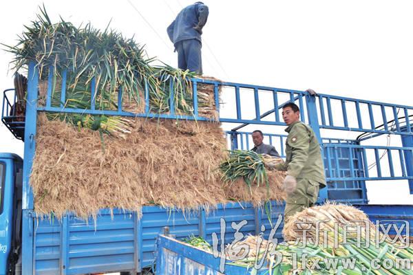 临汾新闻网讯 近日,在翼城县中卫乡赵家村地头,村民正忙着收葱、装车。赵家村是翼城有名的大葱种植基地,该村今年种植大葱500亩,亩均收入3000余元,人均增收2100多元。 李维杰摄