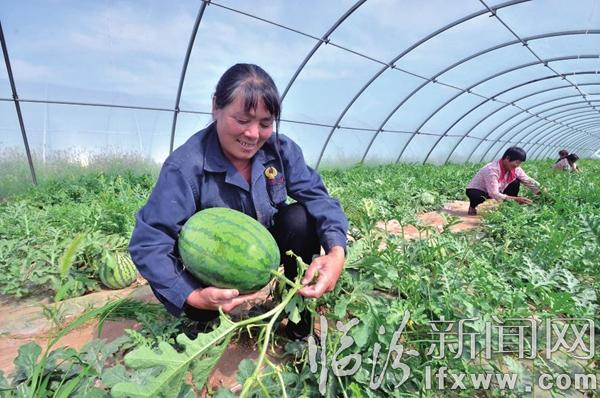 临汾新闻网讯 近日,在翼城县南梁镇长汇农牧开发有限公司,工作人员正在采摘西瓜。该公司通过土地流转,对土地进行资源整合统一规划、统一布局,将大棚西瓜种植作为农民增收的主导产业,由于种植的西瓜具有品质好、口感脆、含糖量高等特点,每天都有来自侯马、浮山等地的客商前来抢购,取得了良好的收益。