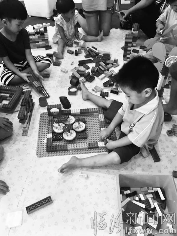 图为孩子们正在认真搭建积木。 记者 李娇 摄