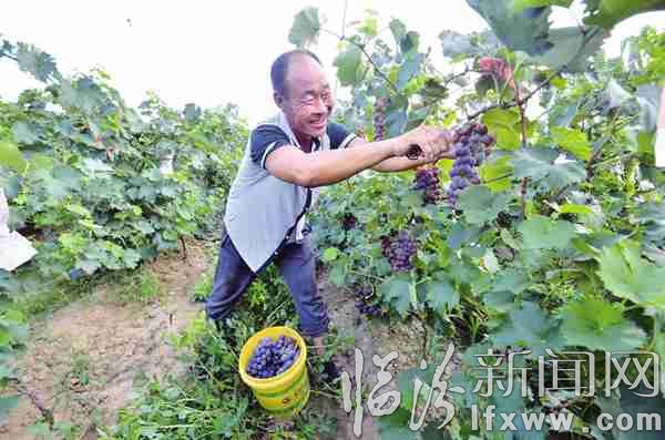临汾新闻网讯 近日,翼城县中卫乡东浮图村村民安国礼的三亩半葡萄陆续成熟,一串串紫红色的葡萄挂满枝头,晶莹剔透,令人垂涎欲滴。因其引进的“巨峰”、巨峰6号”葡萄品种口感好、果肉细腻、糖分含量高,深受消费者青睐,吸引了周边客商纷纷前来抢购。