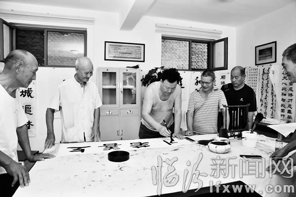 临汾新闻网讯 8月21日,在翼城县城内村文化活动室里老年人正在练习交流书法。近年来,城内村在不断加大对老年人活动基础设施投入的同时,还举办多种文化休闲娱乐活动,充实了老年人的晚年生活。