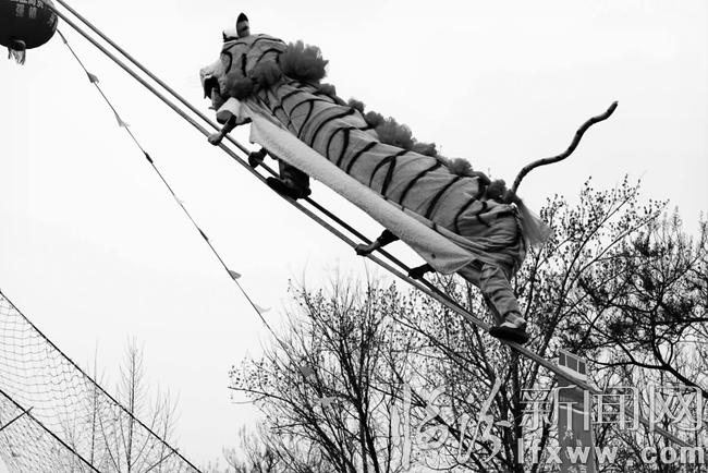 今年翼城县借助发展旅游的东风举办了一系列的文化旅游节,发掘、保护各种非物质文化遗产,“老虎上山”作为一项省级非物质文化遗产项目又重新回到了人们的视线。吕卫星希望能够保留并完善这支年轻的表演队伍。“钱什么时候都可以挣,但是技艺丢了就找不回来了。”吕卫星感慨地说。上世界80年代,在临汾市尧都区平阳广场的一次演出中,由于绳子的质地不够硬,吕卫星没站稳差点从绳索上摔下去,他用手上的力量使劲拽着绳子才找回了平衡。那年吕卫星28岁,32年后的他仍清楚记得当年台下观众青睐的目光、雷鸣的掌声、响亮的呼喊声。