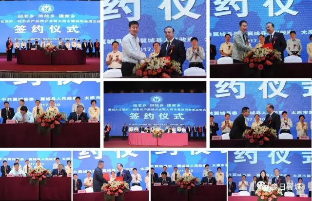 高永贤代表翼城县人民政府,分别同北京华拓集团公司总经理石文杰,中线渠首(北京)农业发展有限公司总经理张之洞,山西果信农业科技发展有限公司总经理焦强,山西省农业资产经营有限责任公司总经理冀成刚,山西瑞石艺术文化传媒有限公司总经理杨瑞褒,杭州海康威视数字技术山西公司总经理唐佳峰,华夏微影山西公司、山西国投文化产业开发公司总经理孙金刚,山西景吾通科技集团总经理马立新,太原一建集团公司、山西辅国房地产开发有限公司总经理王贵聪,山西新浪信息技术服务有限公司总经理申元华签订了翼城县河上公德山旅游开发建设项目、万亩有机小米种植及加工项目、千亩樱桃种植园项目、翅果油合作开发、文化创意产业项目、智慧城市建设、华夏微影文化小镇、景区旅游开发、霸国遗址公园合作开发、电子商务等十个项目。同时,晋味道饮食公司与翼城县伊圣发农副产品合作社签订了特色农产品项目,太原市翼城商会分别与山西上海商会、交通银行山西分行签订了山西上海合作协议、交通银行合作项目。签约项目涉及全域旅游、设施农业、民生事业、市政建设、工业经济等方面,签约总投资金额超过70亿元。