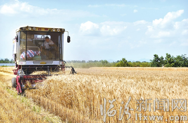 临汾新闻网讯 6月8日,翼城县南唐乡范牛村夏收工作正在如火如荼地进行中。今年该县种植小麦34余万亩,预计总产量11080.7万公斤。夏收期间,该县将投入500余台联合收割机,确保小麦颗粒归仓。